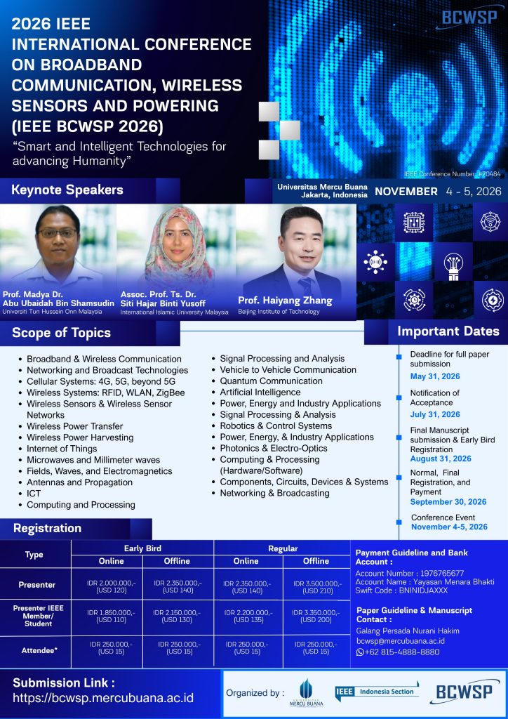 BCWSP 2026 invites papers, original & unpublished work from individuals active in the broad theme of the conference. Potential topics area must be align with IEEE regulations, but not limited such as :